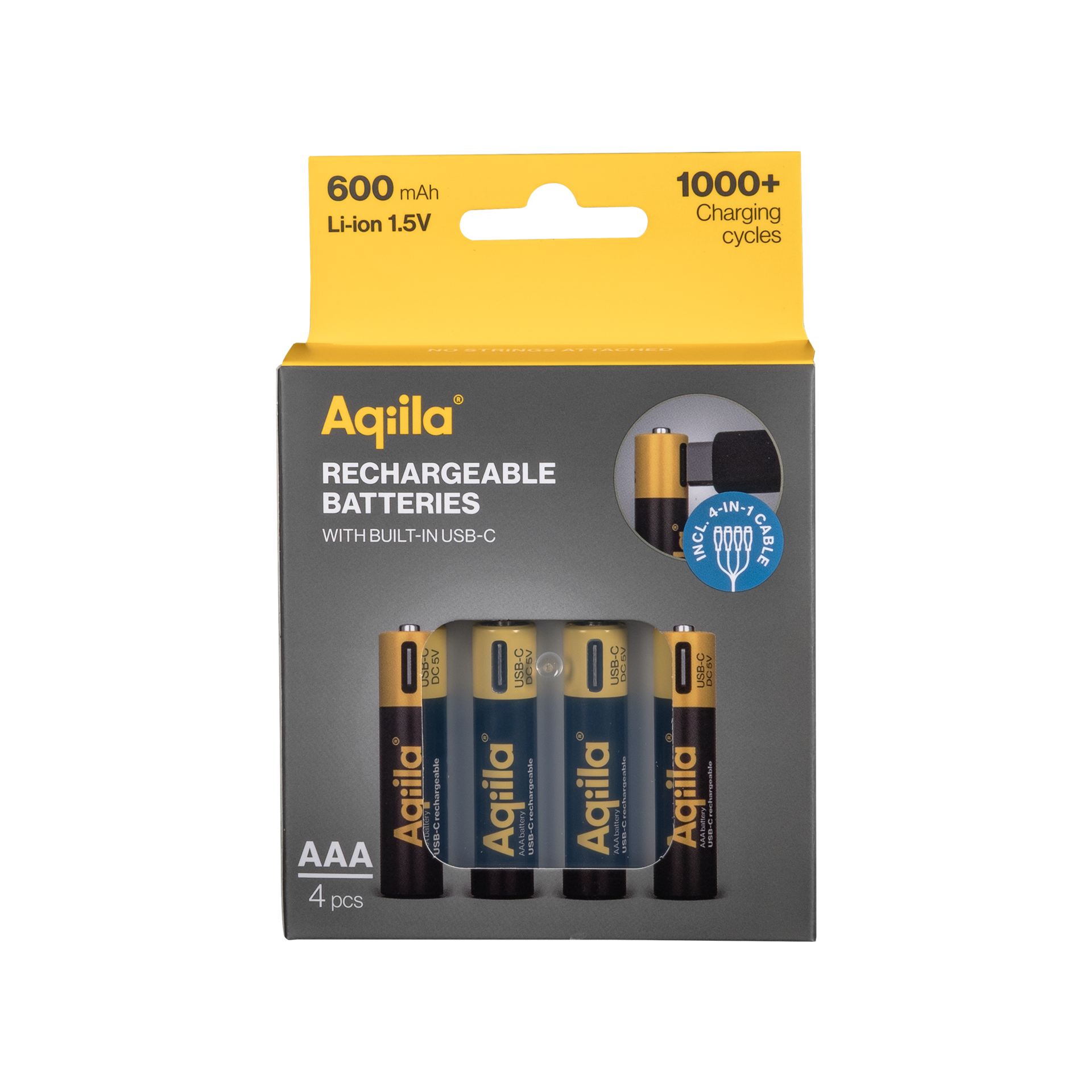 4 X Aaa Genopladelige Lithium Batterier 1.5v 600mah Inkl Usb-C